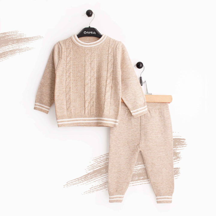 Baby Boy 2pc set wool Skin / White Stripes