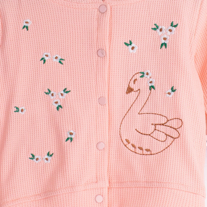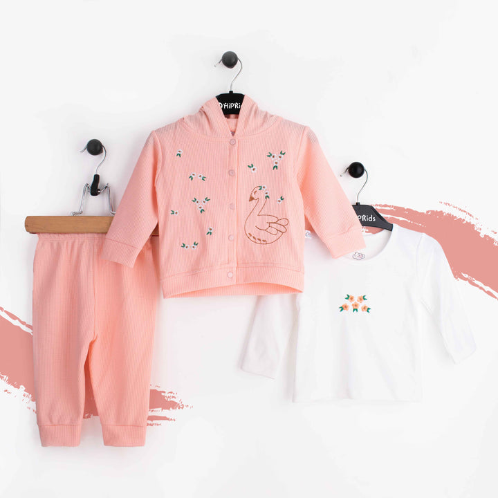 Baby girl 3 Piece Set Peach Embroidered Duck
