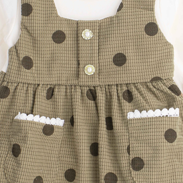Baby Girl Double Pocket Dark Brown Polka Print Frock