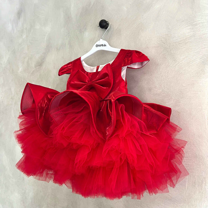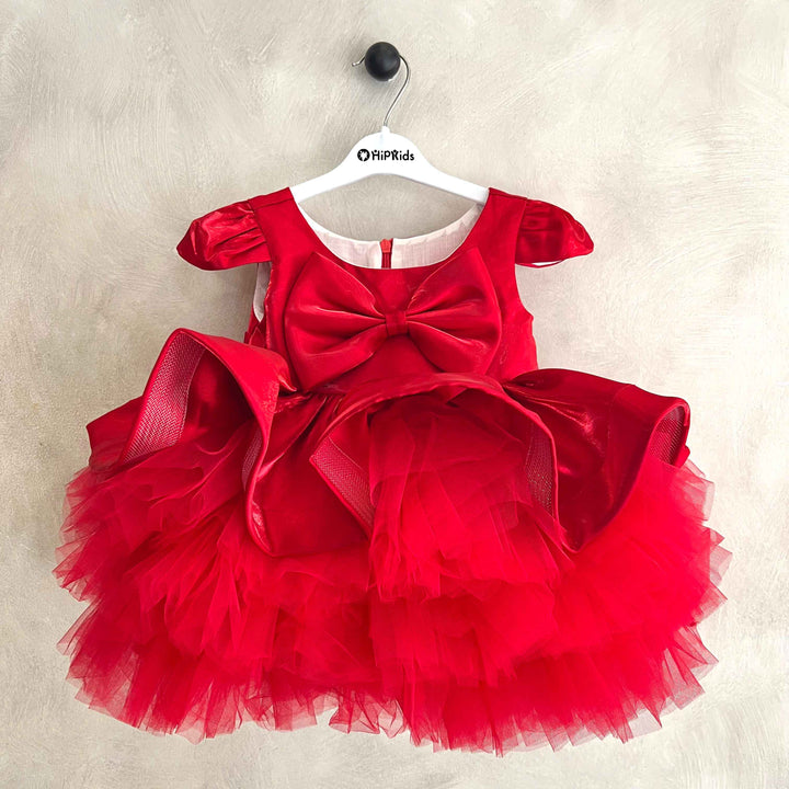 Baby Girl Princess Dress Red Bow Fancy Frock