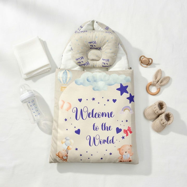 Baby Unisex 2 Piece Set Velvet Carrynest Grey Welcome to the world