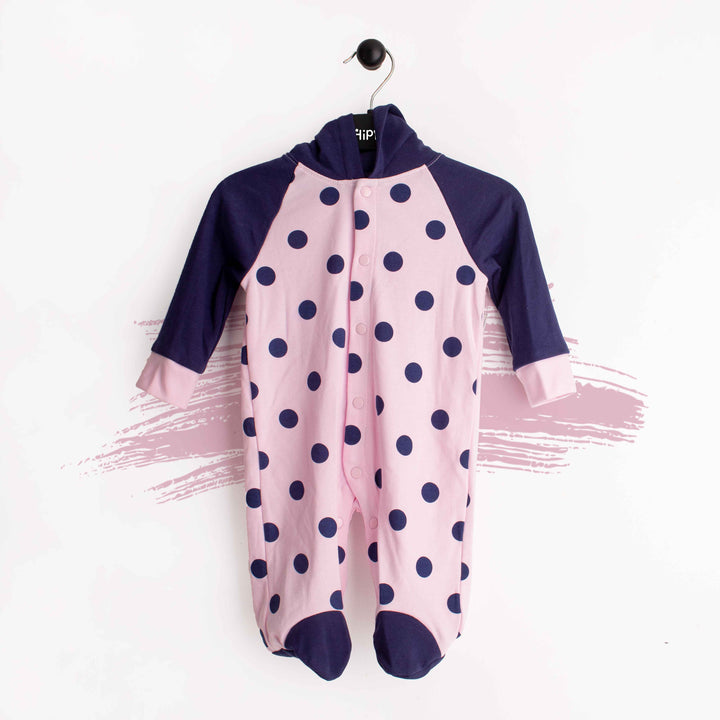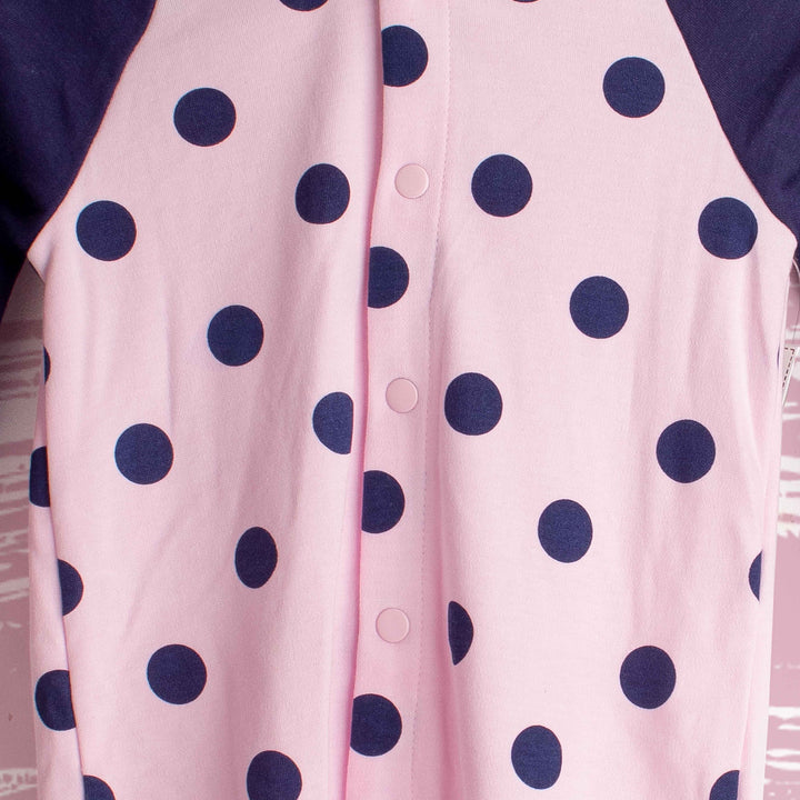 Wonder-child Pink Polka Dots Romper With Hoodie